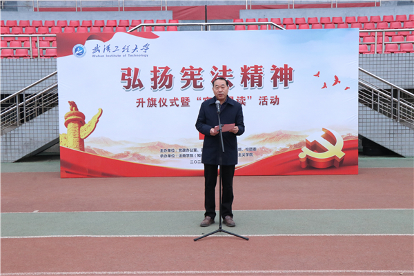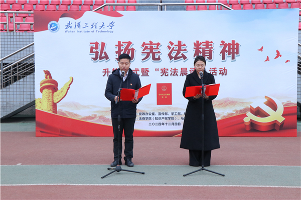 (本网讯 王颖 汪喆伦)12月4日,正值第十一个国家宪法日之际,学校在流芳校区体育场举行“弘扬宪法精神 筑牢法治信仰”升旗仪式暨“宪法晨读”活动,活动由党政办公室、宣传部、学工部、保卫部、校团委、研工部主办,雷竞技raybet登录入口(知识产权学院)、马克思主义学院联合承办。校党委副书记李志旭、校党委常委、宣传部部长韩高军出席了活动。