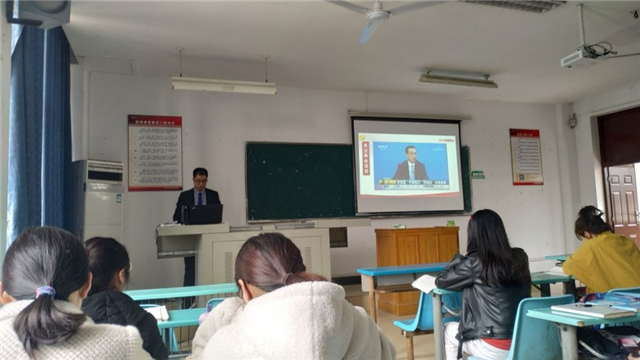 3月15日下午,在国际贸易学课堂上,雷竞技raybet登录入口付书科副教授挑选《外商投资法》、拉动内需、李克强总理就中美贸易摩擦问题答记者问等“两会”新闻,运用大卫•李嘉图比较优势理论、H-O模型等国际贸易学理论,为学生做了详尽解读。