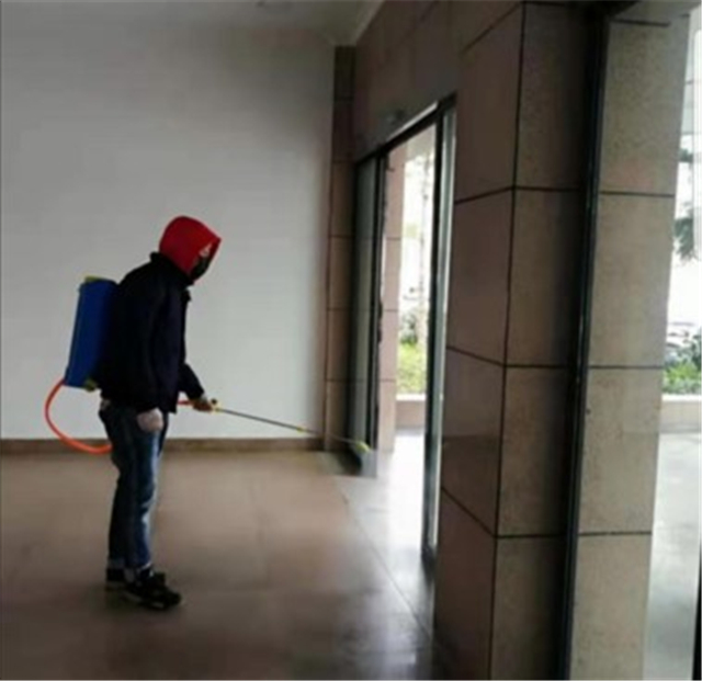 刘东野在对公共区域进行消毒