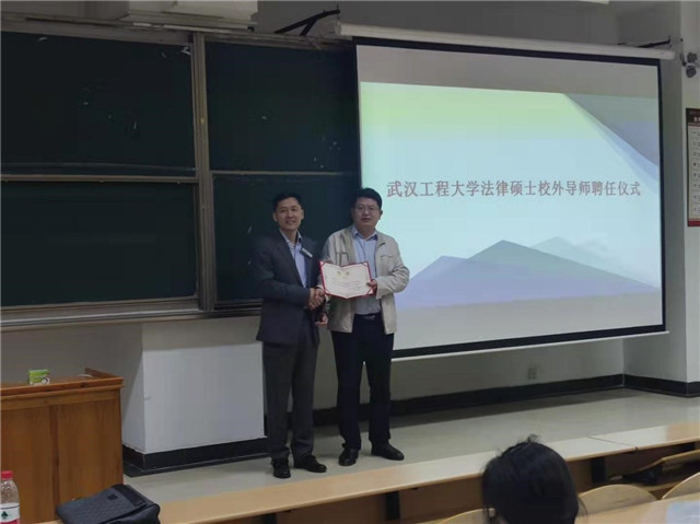 本网讯(通讯员 代江龙)2021年10月11日晚,在1219阶梯教室举行了聘任韩羽枫律师为雷竞技raybet登录入口法律硕士校外导师的仪式。雷竞技raybet登录入口院长金明浩教授、硕士生导师代江龙副教授为韩羽枫律师颁发了聘任书。