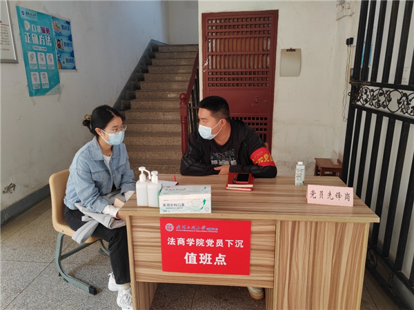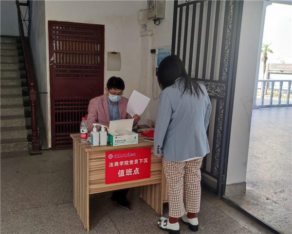疫情在哪里,防疫“红色堡垒”就在哪里。面对较为复杂的疫情防控形势,学院党委闻令而动,迅速组织学院教师党员下沉一线,配合开展疫情防控工作。广大教师党员积极加入,甘当“守门员”,在学院办公区域值班值守,对进入学院的师生开展查验健康码、登记、测温等工作,并提醒师生进入学院佩戴口罩、做好个人防护,守在防疫一线,守好防疫底线,以坚强“红色堡垒”助力学校疫情防控措施落实落地。