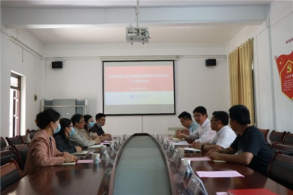 本网讯(通讯员 王祥礼)为深入开展学习贯彻习近平新时代中国特色社会主义思想主题教育,5月24日,江汉大学智能制造学院党委书记李卫东、副书记陈曦一行5人来学院调研“样板党支部”建设情况,雷竞技raybet登录入口(知识产权学院)党委书记杨克平、副书记孙勇、各年级辅导员参加座谈交流。