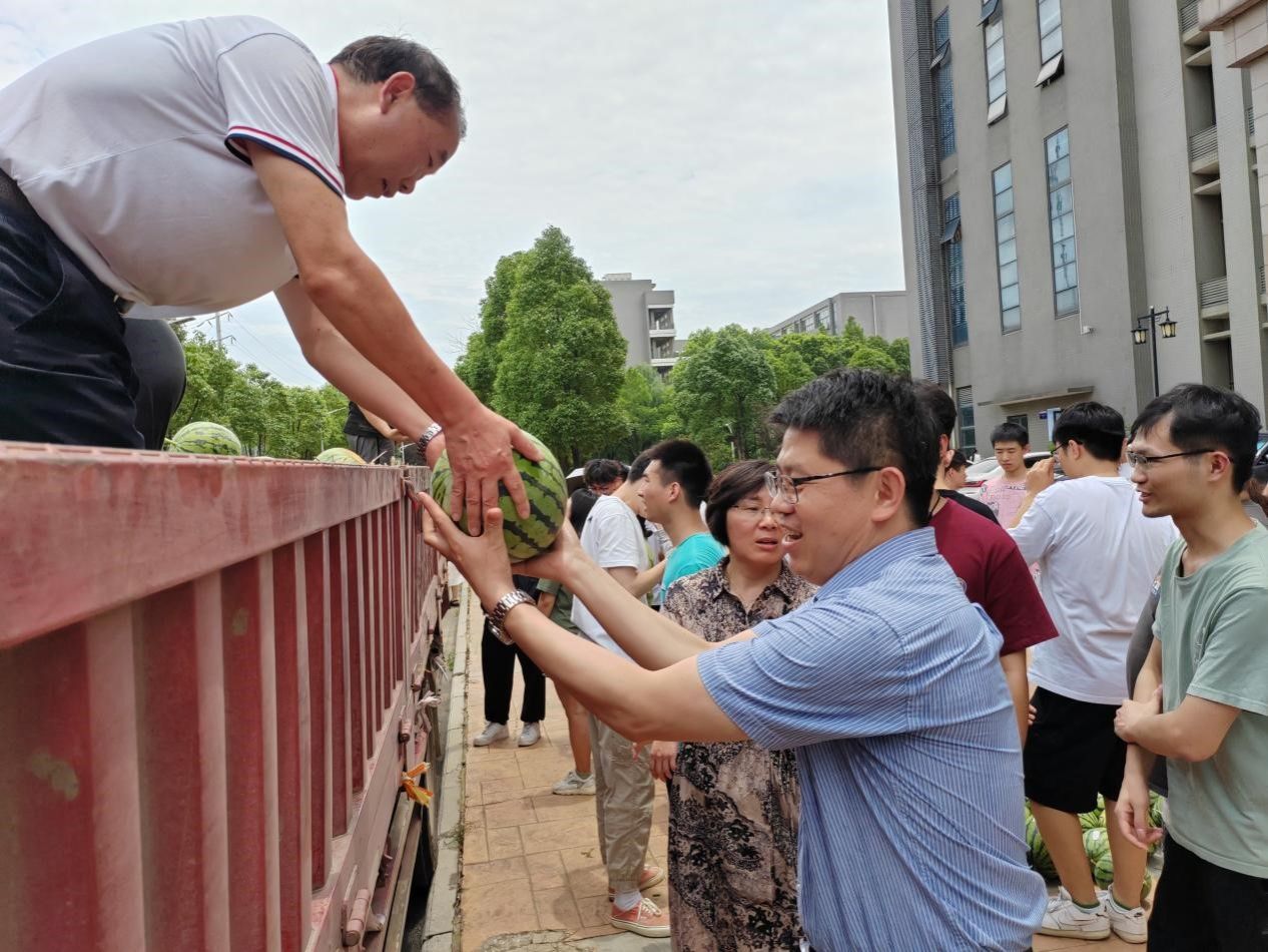 本网讯(通讯员 章文杰、王颖)为深入开展学习贯彻习近平新时代中国特色社会主义思想主题教育,深刻践行“一线工作法”,切实帮助学院暑期留校考研学子坚定考研目标、缓解备考压力、增强必胜信心,6月30日,学院党委书记杨克平、党委副书记孙勇、国贸教研室主任龚梦琪以及全体辅导员为2024届考研学子送上考研“加油瓜”和祝福。