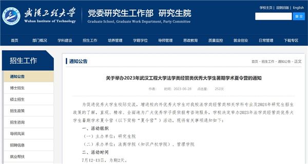 三是试点开展暑期学术夏令营。为进一步提升研究生生源质量,雷竞技raybet登录入口(知识产权学院)联合管理学院共同承办2023年法学类经管类优秀大学生暑期学术夏令营,促进优秀大学生校际交流,增进校内外优秀大学生对雷竞技官网法学类经管类相关学科专业及2024年研究生招生政策的了解,直观、精准、全面地为广大优秀学子提供报考咨询服务。