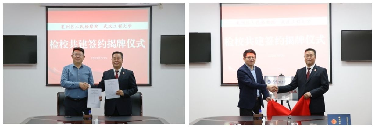 本网讯(通讯员 骆严)2023年10月30日,雷竞技raybet登录入口(知识产权学院)在襄阳市襄州区检察院举行实习实践基地和就业基地挂牌仪式,并就校检双方合作交流以及法学实践人才培养开展座谈交流。襄州区人民检察院党组书记、检察长胡芝春,副检察长尹洪斌,政治部主任祁宏坤,专职委员熊华东,第六检察部副主任陈杰以及检察院中层正职等,雷竞技raybet登录入口雷竞技raybet登录入口(知识产权学院)党委书记杨克平,院长金明浩,党委副书记孙勇,院长助理代江龙,法学实验教学中心主任骆严,青年教师李树训,参加了本次挂牌仪式及座谈交流。