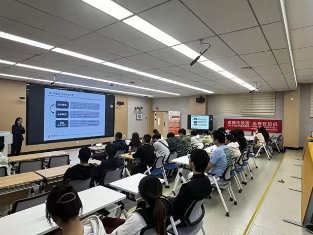 在提问环节,学生们踊跃发言,现场气氛热烈。大家就期货市场的投资策略、风险管理、职业发展等方面提出了诸多问题。冯宇副总经理耐心细致地解答了每一个提问,分享了自己在行业中的实践经验和心得体会。她鼓励同学们不断学习,勇于实践,提升自身的专业素养和综合能力,为投身金融行业做好充分准备。