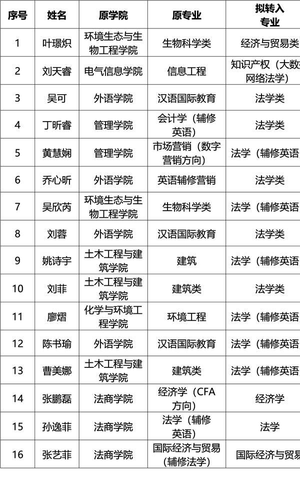 根据学院《2022-2023学年第一学期转专业工作方案》的通知,结合学院专业设置情况,经学院党政联席会研究,拟接受以上16名学生的转专业申请。