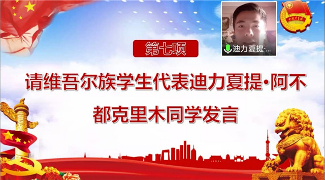 座谈会上,2018级经济学专业的迪力夏提·阿不都克里木同学绘声绘色的向大家介绍了他的民族:维吾尔族。“维吾尔族是一个热情好客的民族,每逢节日,维吾尔族人民都会载歌载舞。习主席强调,国家的希望在青年,民族的未来在青年。我们处在中华民族伟大复兴的关键时期,面临难得的建功立业的人生机遇。这是对我们新时代青年责任能力的一种考验,我们新一代‘90’后年轻人就应该彰显属于自己的特色和担当,并肩负责任。我们广大年轻党员面对疫情,更应该冲锋在前,牢记使命和肩负时代责任。做好表率,彰显新一代‘90’后精神。”