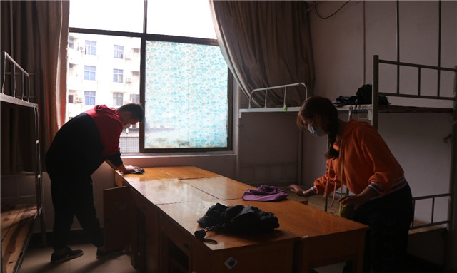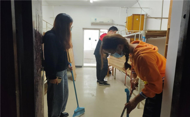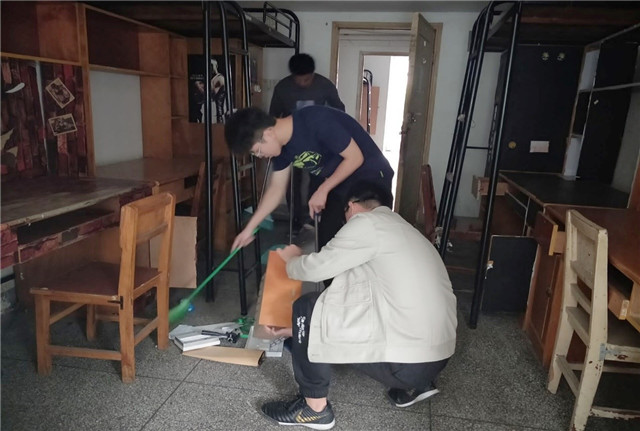 新生报到前,雷竞技raybet登录入口领导班子和党员志愿者在新生宿舍进行大扫除。
