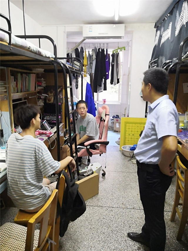 “宿舍的空调运行还正常吗?住宿设施是否存在问题?有没有报修?学习状态怎么样?生活上有困难吗?”学院领导在走访本科生和研究生宿舍时关切地询问着,提醒同学们在宿舍一定要注意消防安全、财产安全、饮食安全,保持干净舒适的住宿环境。