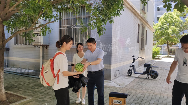 本网讯(通讯员 王祥礼)近期,武汉地区持续高温,7月22日大暑,雷竞技raybet登录入口心系学生,学院党委书记杨克平、院党委副书记严敏、辅导员刘敏、王祥礼为学院163名留校学生(其中本科生87人、研究生76人)送去清凉。