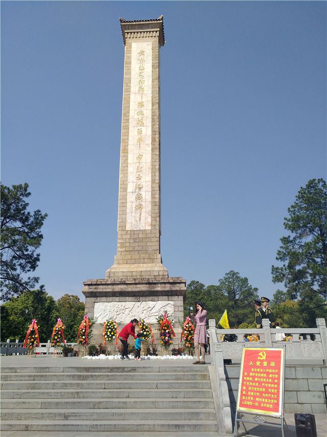 在麻城革命烈士陵园扫墓活动中,在黄麻起义和鄂豫皖苏区革命烈士纪念碑前,全体人员面向纪念碑鞠躬,深刻缅怀革命先辈们的丰功伟绩,向革命烈士致以深深的敬意。全体党员在革命烈士纪念碑前列队向党旗庄严宣誓,重温入党誓词。
