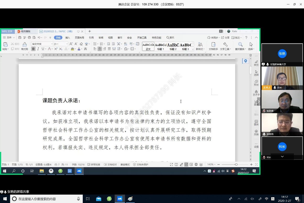 在根据在元月份专家咨询会专家提出的意见与建议进行集中修改的基础上,321日上午,学院组织召开国家基金内部交流会,各年轻教师针对项目申报书撰写过程中的经验和问题进入了深入交流,以便对国家基金申报书进行进一步修改与打磨。